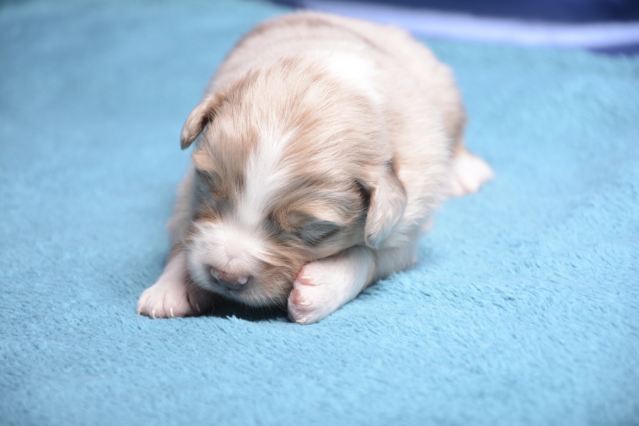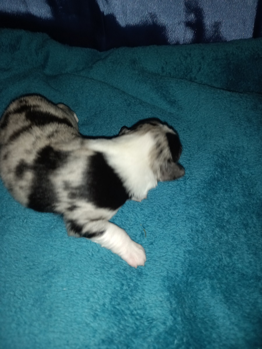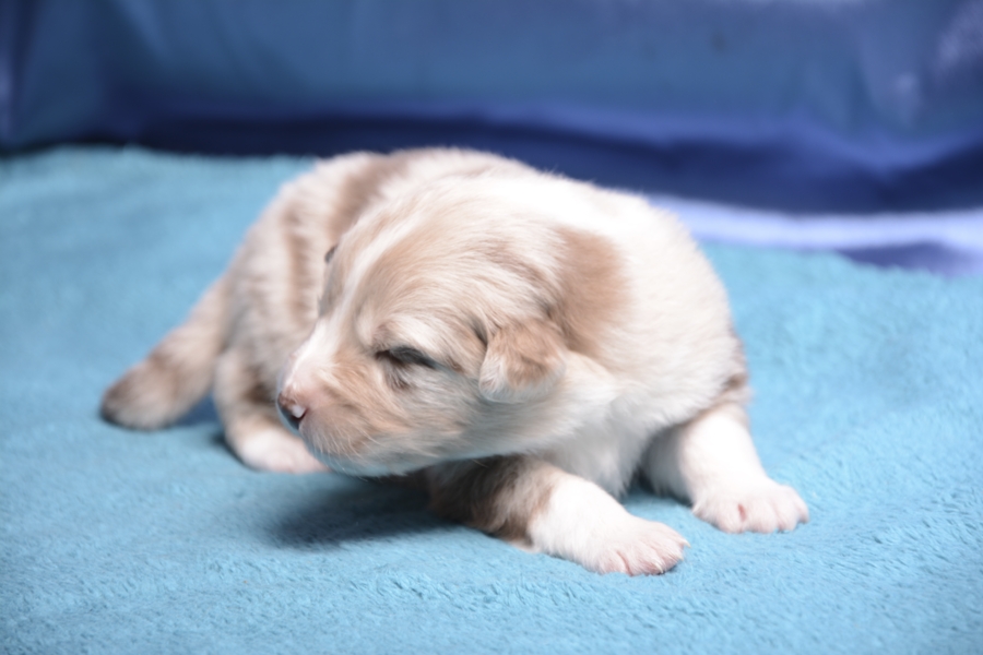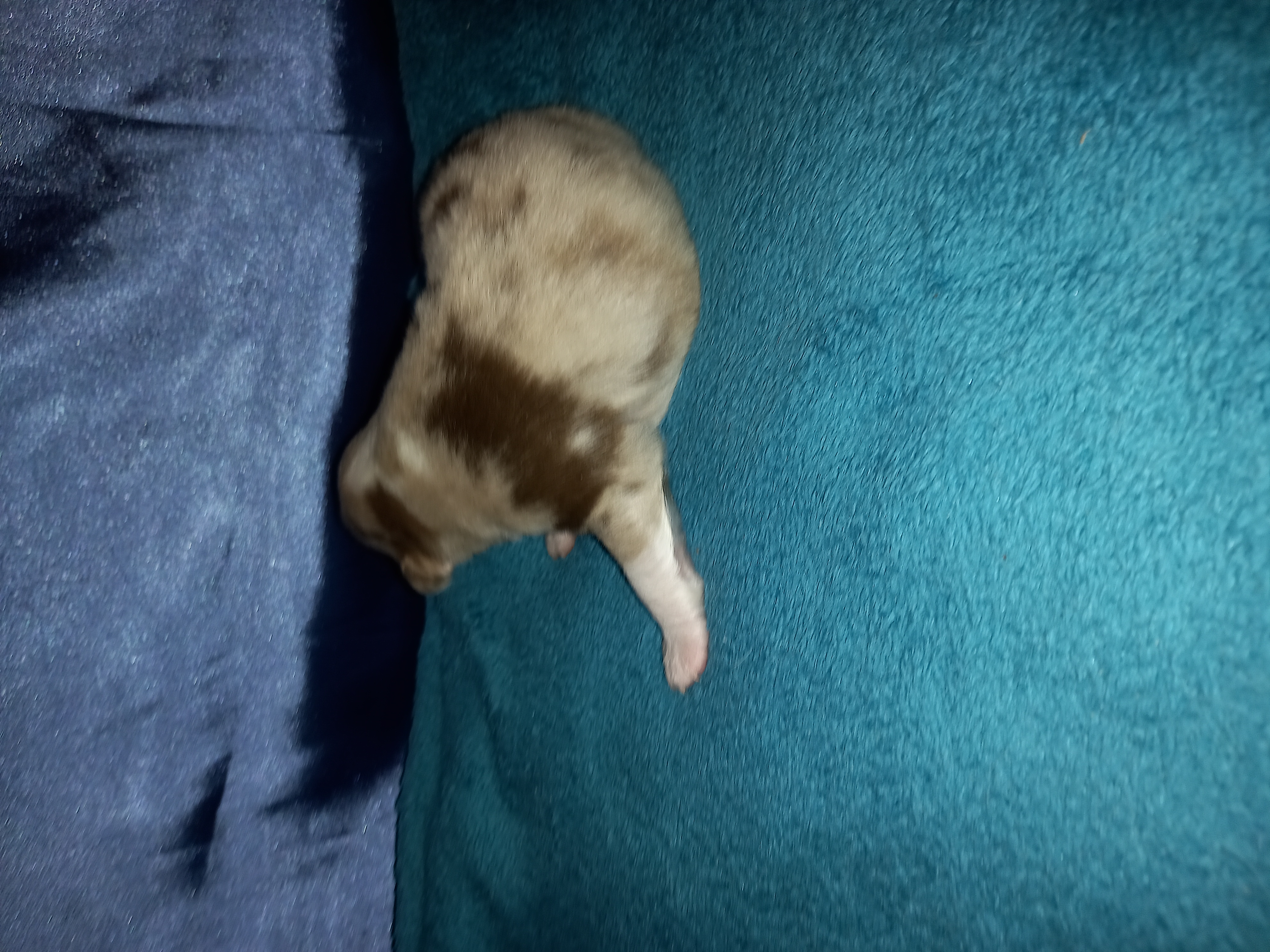 Like her grandma Invita and her mum Thordis she gave birth very quickly - her seven puppies (3 red merle males, one black tri male, one red bi female and two blue merle females) were born within just 3 hours.